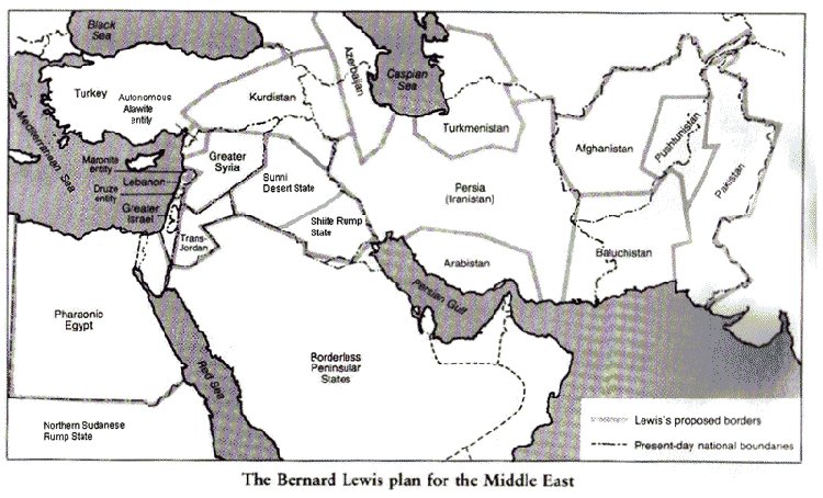 Всё это заставило вспомнить многих интеллектуалов исламского мира первоисточник теории раздела арабского мира. Им оказался американо-англичанин иудейского вероисповедания Бернард Люьис, известный исследователь по Ближнему Востоку, профессор Принстонского университета.