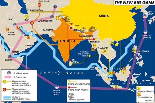 Таиланд. В этой стране крупнейший узел напряжённости – её южная часть, провинция Паттани. Она населена мусульманами. Партизанская война в этом регионе почти завершилась только в 1970-е годы. Последние карательные операции властей прошли в Паттани в середине 1980-х. Однако в 2004 году в провинции была создана новая мощная партизанская группа – «Движение исламских моджахедов провинции Паттани». Примечательно, что эта провинция находится на входе в Молуккский пролив – через который проходит до 70% китайского импорта.