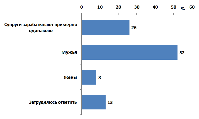 Рис. 14. Нормативное представление о гендерном распределении ролей в России. Вопрос финансового обеспечения семьи. (в %)