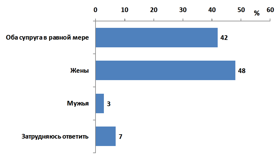 Рис. 11. Гендерное распределение семейных обязанностей в России. Ведение домашнего хозяйства (в % семей)