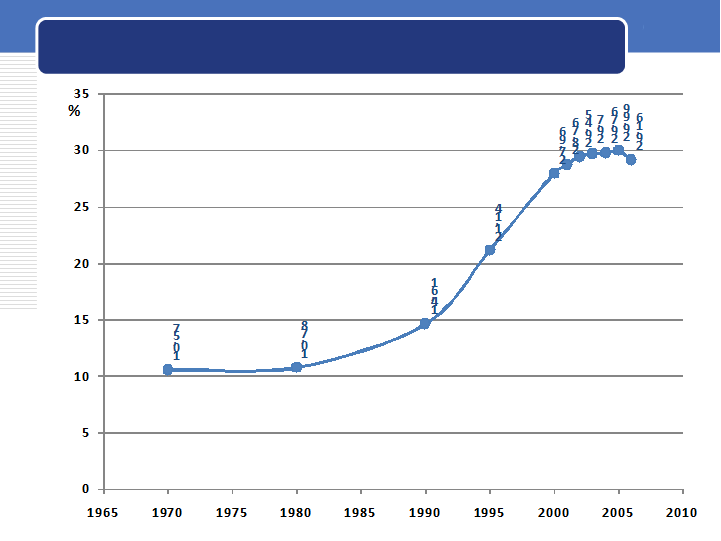 О девальвации семейных ценностей свидетельствует также феномен внебрачной репродуктивности. На настоящее время почти треть появляющихся на свет детей рождается вне зарегистрированного брака. (См. рис. 19). Семья, таким образом, утрачивает не только сакральное значение, но и функциональный смысл – совместное воспитание потомства.
