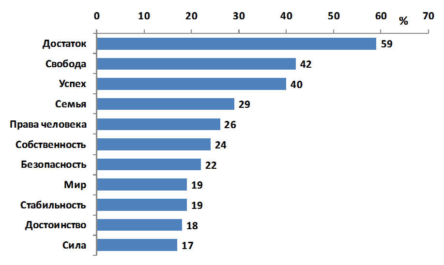 Рис 10. Иерархия ценностных ориентиров российской молодежи (в %)
