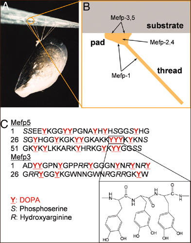 Ученые из Northwestern University изучили суперклей мидий и выяснили, что его основной компонент – это особая аминокислота, 3,4-диоксифенилаланин. Именно она позволяет клеевой смеси быстро высыхать и прилипать даже к самой скользкой поверхности.