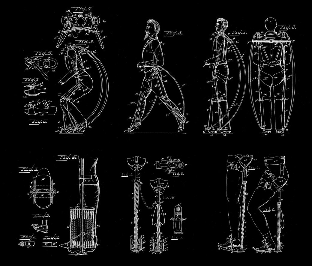 Первым изобретателем экзоскелета считается русский «инженеръ-механикъ» Николай Фердинандович Ягн, который ещё в 1890-х годах зарегистрировал ряд патентов на эту тему. Он жил в Америке, где, собственно, и патентовал свои чудеса, показывал их на выставках, а по возвращении на родную землю снова изобретал. Его экзоскелет должен был облегчить ходьбу, бег и прыжки в первую очередь, солдат. Уже тогда русский гений предвидел потенциальную военную мощь подобных устройств.