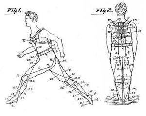 Отдалённо напоминающее экзоскелеты устройство «педомотор» изобретателя Лесли С. Келли, разработанное в 1917 году.