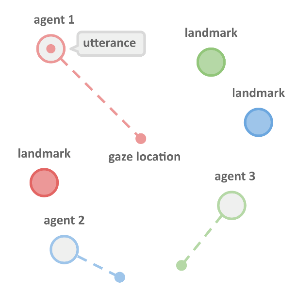 Для обучения языку ботов (программных агентов) поместили в условную вселенную «белого квадрата», задали им энергию движения,цели и возможность обрабатывать опыт соотнесения себя с целью. Первоначально у ботов был личный опыт успеха, небольшой набор команд действия, а также им дали способ обмена информацией — при помощи близкого «тактильного контакта» или при помощи дистанционного прообраза «слуха и зрения» (здесь будет уместней пользоваться термином направление информационного потока). Предназначением ботов в условной вселенной «белого квадрата» было достичь определенной точки самому, сообщить другому агенту свою цель, обменяться целями, затолкать другого агента к цели при отсутствии информационного обмен а между ними. Цели и боты отличались размером или цветом.