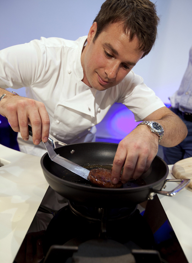 Одновременно ученые вырастили жировые клетки, которых набралось 200 полосок. Их смешали с мышечными и пропустили через мясорубку. На выходе получился говяжий фарш. Пост принес его в стеклянной посудине, похожей на чашку Петри.