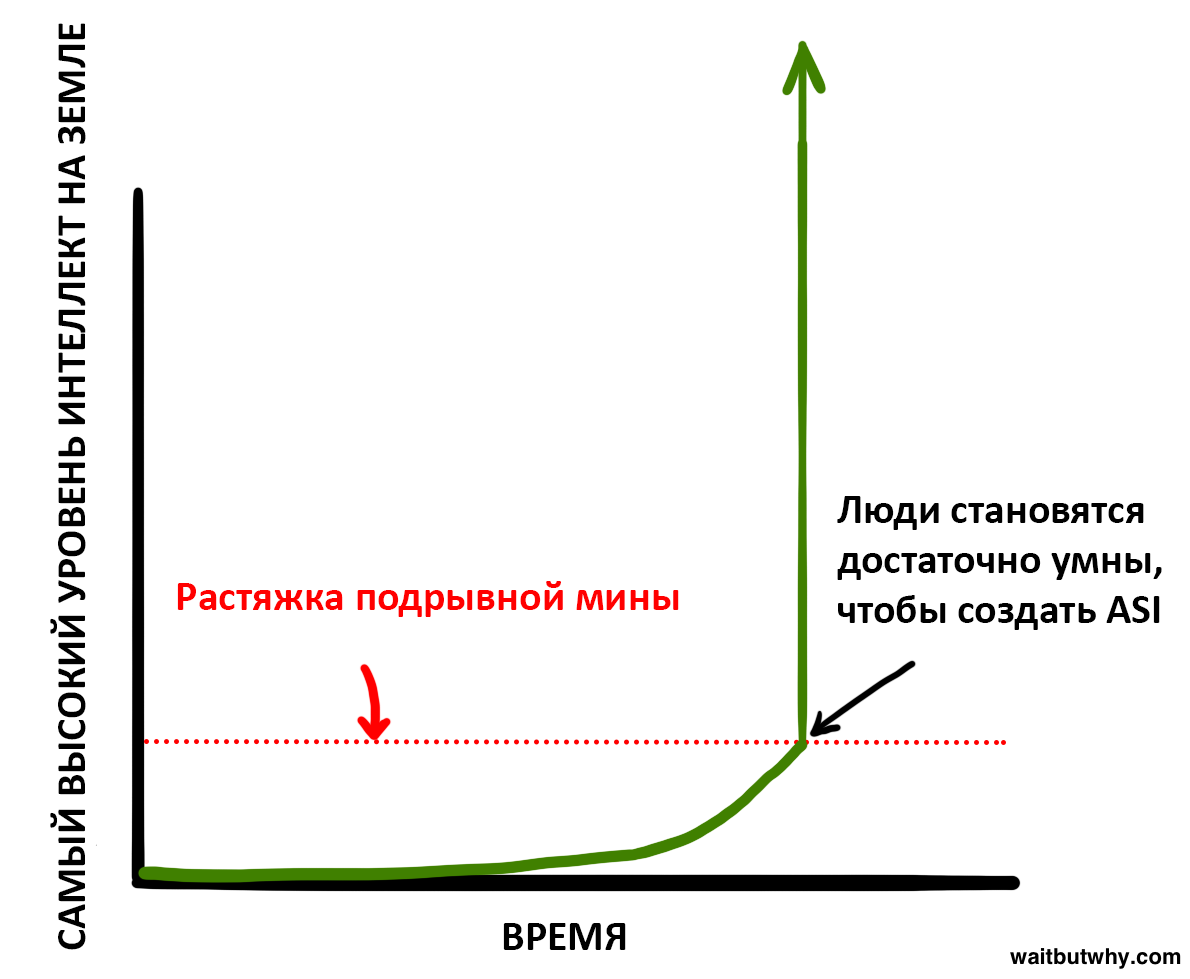 Надеюсь, вы насладились временем, пока все было безобидно, потому что с этого момента вся эта история с ИИ начнет становиться ненормальной и пугающей. Я хочу напомнить, всё, что я буду говорить, по–прежнему имеет реальные научные подтверждения и является прогнозом на будущее, который составили самые высокоуважаемые мыслители и ученые современности. Просто держите это в уме, пока читаете. Во всяком случае, как я уже сказал выше, большинство вариантов развития событий, по которым мы доберемся до AGI, подразумевают процесс самосовершенствования ИИ. И как только появится AGI, даже системы, которые разрабатывались с помощью методов, не включавших в себя самопрограммирование, станут достаточно умными, чтобы начать самостоятельно вносить в свою архитектору изменения, если они этого захотят. И вот тут вся концепция начинает становиться еще интереснее. Давайте введем новое понятие: рекурсивное самосовершенствование. Работает оно следующим образом: Система ИИ в какой–то момент, скажем, на уровне тупого деревенщины, программируется на самосовершенствование. Как только это происходит и она становится умнее, достигая уровня Эйнштейна, она продолжает развиваться, но уже обладая интеллектом Эйнштейна, на что будет требоваться меньше времени. По мере того, как скачки в развитии будут увеличиваться, AGI достигнет уровня ASI — это и называется Интеллектуальным Взрывом и служит окончательным примером действия Закона ускоряющейся отдачи. Ведутся некоторые споры о том, как скоро ИИ достигнет общего уровня человеческого интеллекта. По опросам сотен ученых, это, вероятно, произойдет к 2040, что всего через 25 лет, и это не так уж и нескоро. Но может произойти и следующее: Слабому ИИ потребуется несколько десятилетий, чтобы стать AGI с низким уровнем интеллекта, но в конечном итоге это все равно произойдет. Компьютер будет способен понимать окружающий мир на уровне четырехлетнего ребенка, но уже через час он будет понимать сложнейшую теорию физики, которая объединяет теорию относительности с теорией квантовой механики, что не удавалось сделать ни одному человеку. Через еще полтора часа AGI достигает уровня ASI и будет превышать интеллект любого человека в 170000 раз или 270000, или какая разница вообще. Сверхинтеллект такой величины мы даже отдаленно понять не сможем. Все равно, что шмель попытается разобраться в Кейнсианской экономике. В нашем мире уровень IQ составляет в среднем 130 баллов для умного человека и 85 для глупого, мы даже не способны представить уровень IQ в 12952. Точно известно, что абсолютное доминирование людей на Земле предполагает четкое правило – с разумом приходит сила. Это означает, что ASI станет самым мощным созданием, когда–либо существовавшим на Земле, и это может произойти через несколько десятилетий. Если наши скудные мозги были способны придумать Wi–Fi, то чему–то, что в 100 или 1000 или 1000000000 раз умнее, чем мы, не составит труда контролировать расположение каждого отдельного атома во вселенной. Все, что мы привыкли воспринимать как некую магию, любая сила, считавшаяся нами чем–то божественным, станет для ASI простой, как выключение света. Создание технологии обратного старения человека, лечение болезней и голода, перепрограммирование погоды для защиты будущей жизни на Земле — все это станет возможным. Но также возможным будет и моментальн