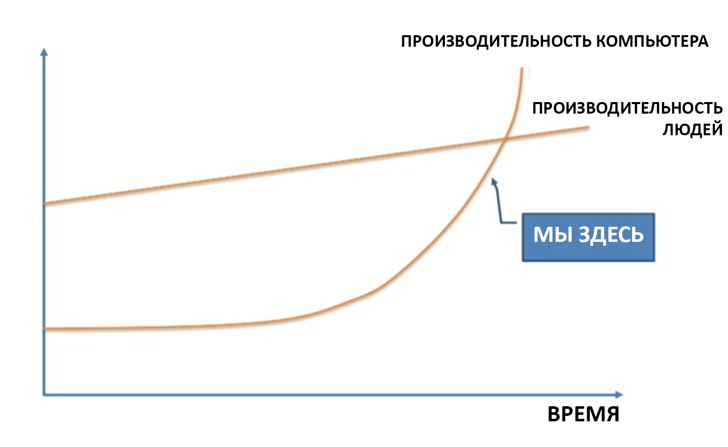 Очень вероятно, что когда процесс эволюции подведет нас к этой бомбе, взрыв навсегда положит конец человеческой связи с бревном баланса и создаст новый мир с людьми в нем или без них. Кажется, единственный вопрос, которым нам следует задаваться сейчас, — в какую сторону мы свалимся с бревна баланса, когда наступим на эту бомбу и, собственно, когда это все произойдет? Никто точно не знает, но многие ученые потратили кучу своих сил и времени, размышляя над этим вопросом. Оставшуюся часть поста мы потратим на исследование результатов их деятельности. Начнем с первой половины вопроса: когда мы наступим на бомбу? Как долго придется ждать, пока машины достигнут уровня сверхинтеллекта? Неудивительно, что оценки приводятся совершенно разные, и среди ученых ведутся жаркие споры по этому поводу. Многие, как профессор Вернор Виндж, ученый Бен Гёрцель, соучредитель компании Сан Майкросистемс Билл Джой и более известный изобретатель и футуролог Рей Курцвейл согласились с экспертом машинного обучения Джереми Говардом, когда тот представил следующий график на Ted Talk: