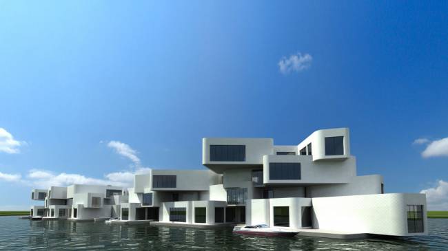 Наиболее известны на данный момент разработки компании Waterstudio, созданной архитектором Коэном Олтиусом. Компания занимается проектированием водных домов, в том числе и многоквартирных.