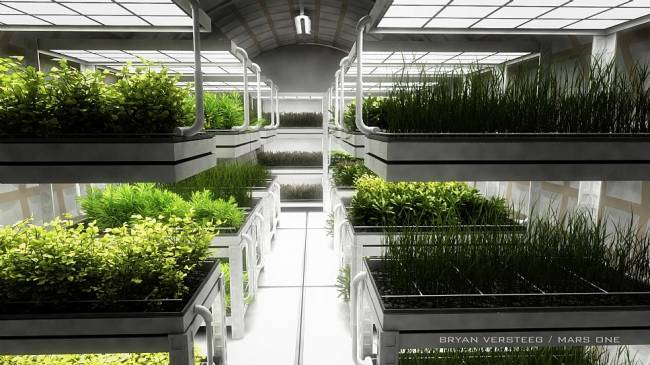 В оранжереях при искусственном освещении выращивались специальные сорта пшеницы, сои, салата, чуфы (среднеазиатской масличной культуры), моркови, редиса, свеклы, картофеля, огурцов, щавеля, капусты, укропа и лука. Карликовая пшеница, выведенная профессором Г.М.Лисовским, имеет укороченные стебли, что позволило снизить количество отходов. Также в пищу использовались консервы с продуктами животного происхождения.