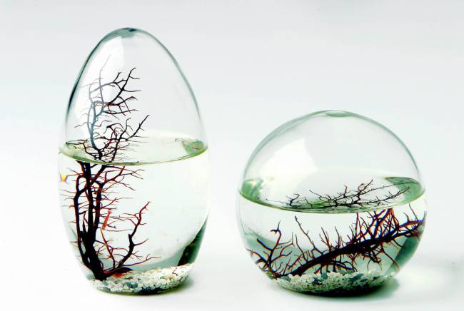 Речь идет о биологическом модуле под названием Ecosphere, представляющем собой герметичный стеклянный шар-аквариум диаметром 10-20 см, заполненный морской водой с небольшим пузырьком воздуха и «заселенный» несколькими креветками Halocaridina rubra, кусочками коралла, зелеными водорослями, а также бактериями, расщепляющими продукты жизнедеятельности креветок. На дно аквариума, скорее из эстетических соображений, насыпано немного песка и раковин.