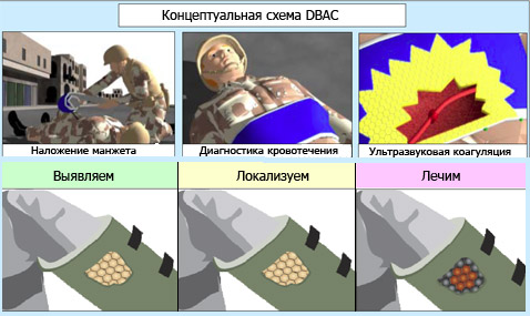 Соответственно, военным было необходимо устройство, которое позволило бы, с одной стороны, быстро диагностировать внутреннее кровотечение, а с другой, не менее быстро его остановить. Заказчиком такого девайса выступило агентство DARPA, а проект получил кодовое название "Акустическая коагуляция внутреннего кровотечения" (Deep Bleeder Acoustic Coagulation – DBAC).