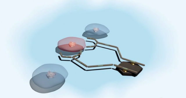 Рис. 3. Разработка будет интегрирована в нанороботов, которые будут искать поражённые клетки, сами диагностировать заболевание и выдавать нужное лекарство (иллюстрация University of Texas).