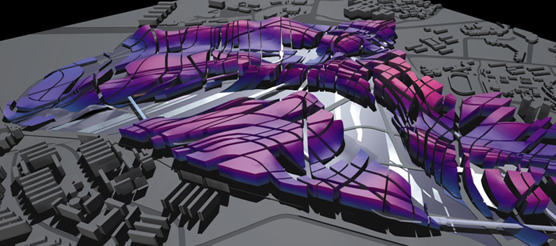 С помощью BIM-программ можно параметризировать проектирование в буквальном смысле, превратить его в “3D-уравнение”. То есть, создать модель, которая благодаря заданным зависимостям будет сама подстраиваться под обстоятельства. Или сформировать набор правил, которые на основе имеющейся информации будут генерировать что-то новое. Алгоритмический морфогенез применим как в минимальных объектах, типа автобусных остановок, так и в крупномасштабных, на уровне градостроительства. Кстати, бюро ЗахиХадид и Патрика Шумахера “широко известно в узких кругах” параметрическими генпланами городов, формируемыми при помощи скриптов (КДПВ демонстрирует один из них, это Сингапур).
