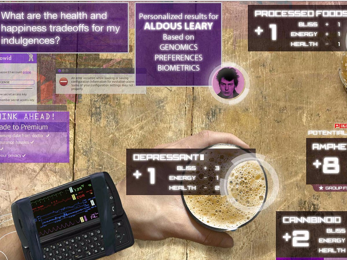 Носимое устройство Indulgence Navigator анализирует генетику и психологию владельца и отслеживает его пристрастия, чтобы не давать ему потреблять вредную пищу в минуты слабости.