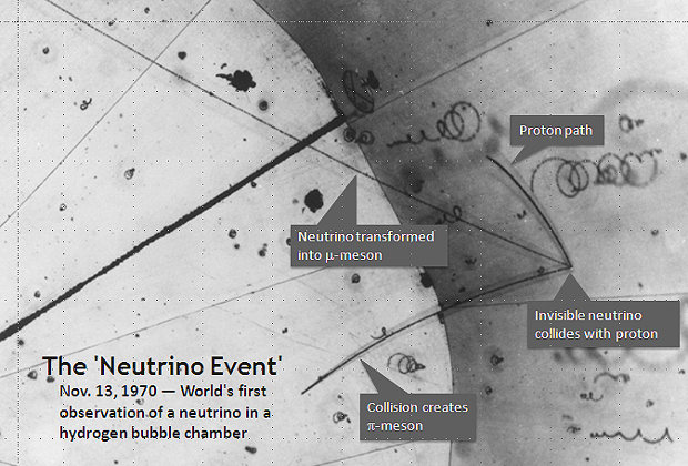 Обнаружение нейтрино по трекам в пузырьковой камере (1970 год)
