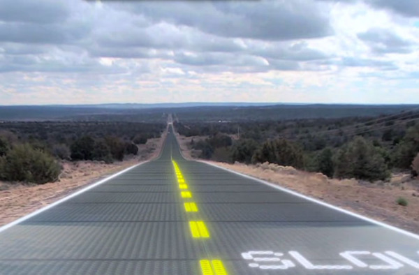 Двое обычных американских граждан решили изменить понимание дорожного полотна и разработали проект «Солнечной дороги». Он заключается в применении солнечных батарей для покрытия дорог и стоянок, что обеспечит дополнительную выработку электроэнергии. Шестиугольные панели планируется делать из закаленного стекла, они будут достаточно прочны, чтобы выдержать вес автомобиля. Встроенные светодиоды будут отображать разметку и информировать водителей о дорожной обстановке. Также предусмотрены ливневые каналы для отвода грязной дождевой воды.