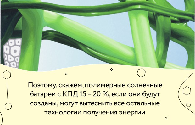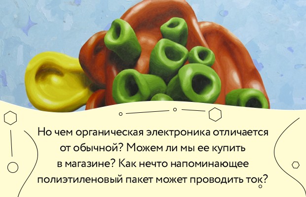 Кремниевая электроника хрупкая и негибкая. Но вспомните полиэтиленовые пакеты: их можно сворачивать, мять, скручивать, растягивать. Одним словом, делать все что угодно, чтобы собрать на балконе пакет с мусорными пакетами. Точно так же гибкой может быть и органическая электроника: на полимерах можно сделать экран, скручивающийся в рулон, или даже электронные обои вместо привычного телевизора.
