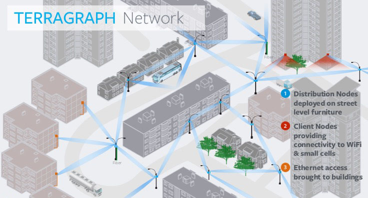 Facebook в 2016 году представила проект Terragraph — многоузловую беспроводную систему, которая должна обеспечить жителям стабильный доступ к сети в густонаселённых городах. Terragraph, рассказывает Цукерберг, должна повысить пропускную способность уже существующих оптоволоконных сетей. В дальнейшем, сообщает он, возможность мгновенно прогружать большое количество информации может пригодиться в сферах виртуальной реальности, обмена видео в режиме реального времени и так далее.