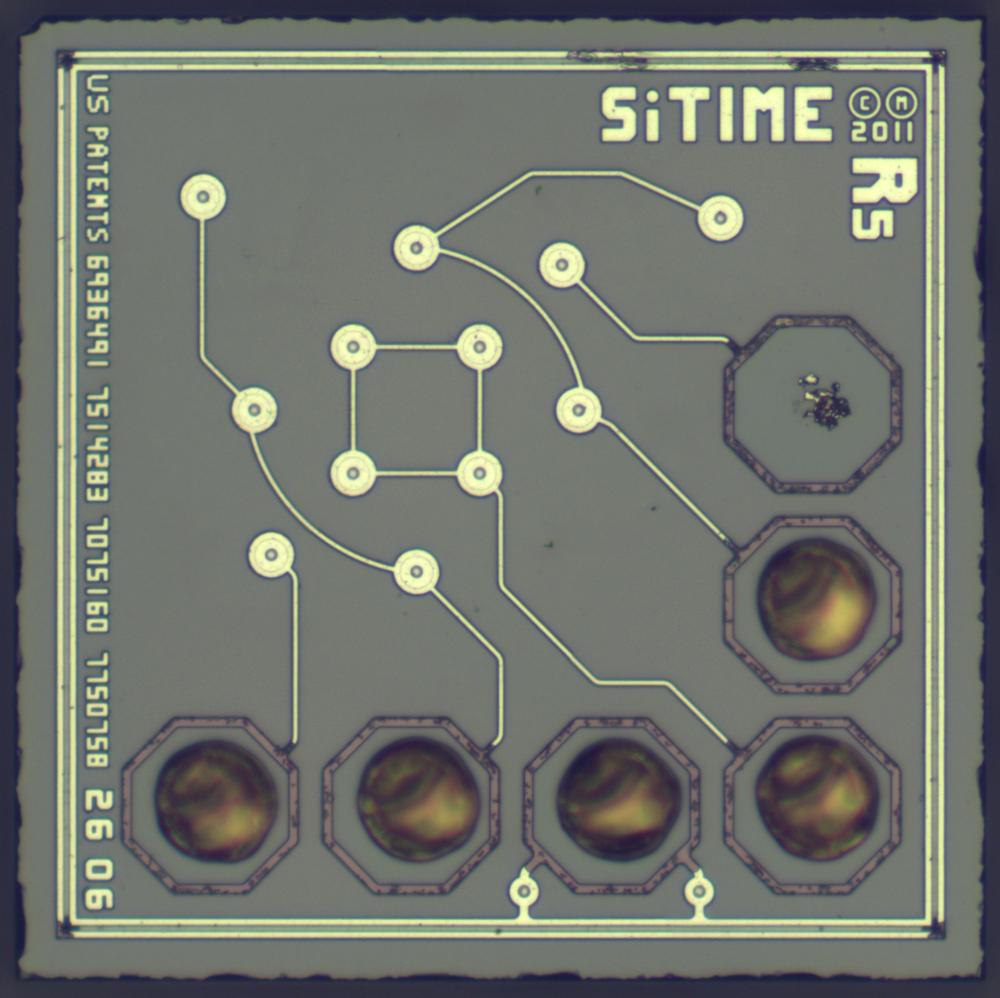 Кстати, микросхему SiTime SiT8008 удалось поковырять: это генератор на основе MEMS, а не кварца. Микромеханический резонатор запаян в вакууме _внутри_ кристалла. Это действительно хайтек — жаль что и производство и интеллектуальная собственность остается за рубежом.