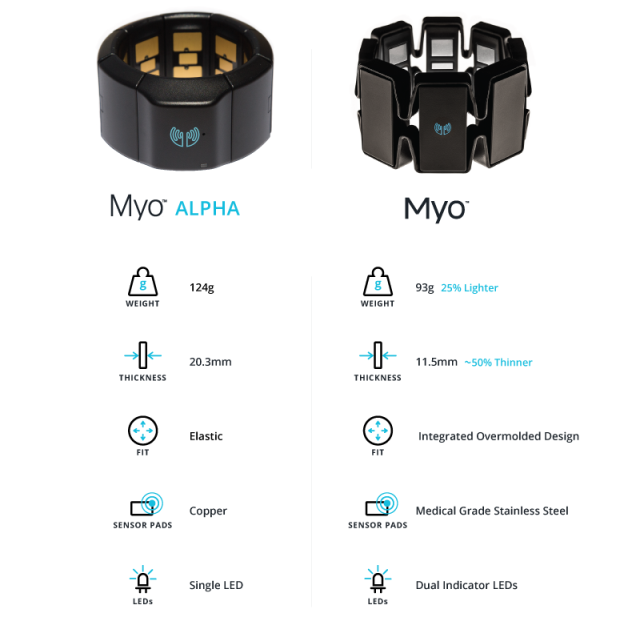 Созданные ранее технологии, опирающиеся на камеры по отслеживанию движений, не подходили для проектирования системы по распознаванию жестов. Решение о начале использования электромиографии было очень удачным, потому как гаджет улавливает желания-команды пользователя раньше, чем он сделает жест рукой.