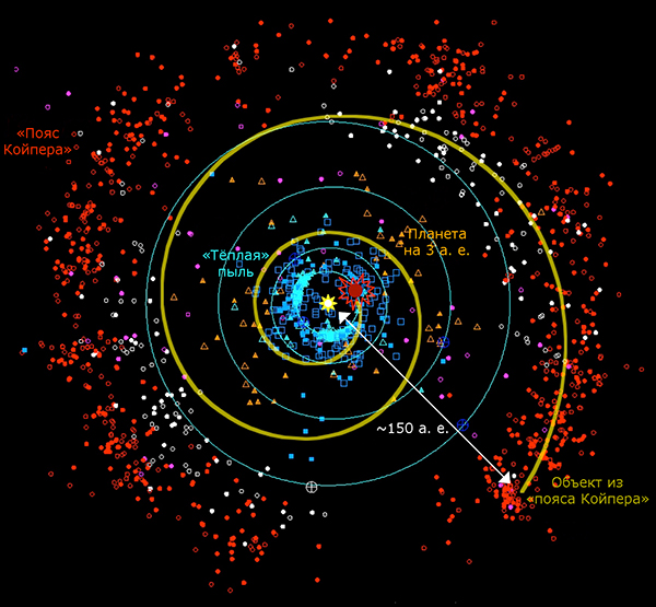 Протодиск содержит оставшийся материал после образования планет. Он напоминает пояс Койпера, который содержит ледяные обломки, кометы и карликовые планеты, вращающиеся за орбитой Нептуна.