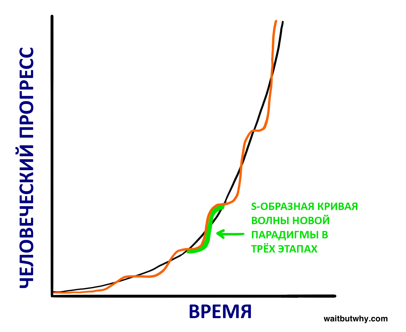 Это, должно быть, так волнующе, но вспомните один важный нюанс: когда вы стоите на временном графике функции, вы не видите, что находится справа от вас. На самом деле, стоять на пороге технологической революции — это вот так: