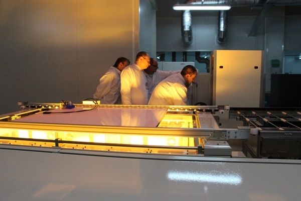 Сегодня на заводе стоят огромные производственные машины, каждая имеет 30 реакторов. Сейчас в них закладывают стекла 110х130 кв.см, на которые наносятся фотоактивные слои, в основе которых микрокристаллический и амфорный кремень. Модернизация заключается в замене стекла на металлические листы, напыляться на которые будет амфорный кремний. Затем будет формироваться токосъем, и, в итоге, получатся преобразователи с 20-% и более КПД.