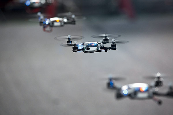 Ближе всего к данной концепции подобрались на данный момент инженеры из пенсильванской лаборатории KMel Robotics. Они активно работают с миниатюрными квадрокоптерами, и их системы могут образовывать в воздухе сложные фигуры, синхронно перегруппировываться и взаимодействовать друг с другом.