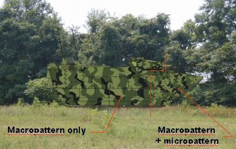 «Цифровой камуфляж» описывает микропаттерн (микрошаблон), формируемый некоторым количеством малых прямоугольных пикселей различных цветов (в идеале до шести, но обычно из соображений стоимости не более четырех). Эти микрошаблоны могут быть шестиугольными или круглыми или четырехугольными, они воспроизводятся в различных последовательностях по всей поверхности, будь это ткань или пластик или метал. Различные шаблонные поверхности схожи с цифровыми точками, которые формируют целостное изображение цифровой фотографии, но организованы они таким образом, чтобы размыть очертания и форму объекта.