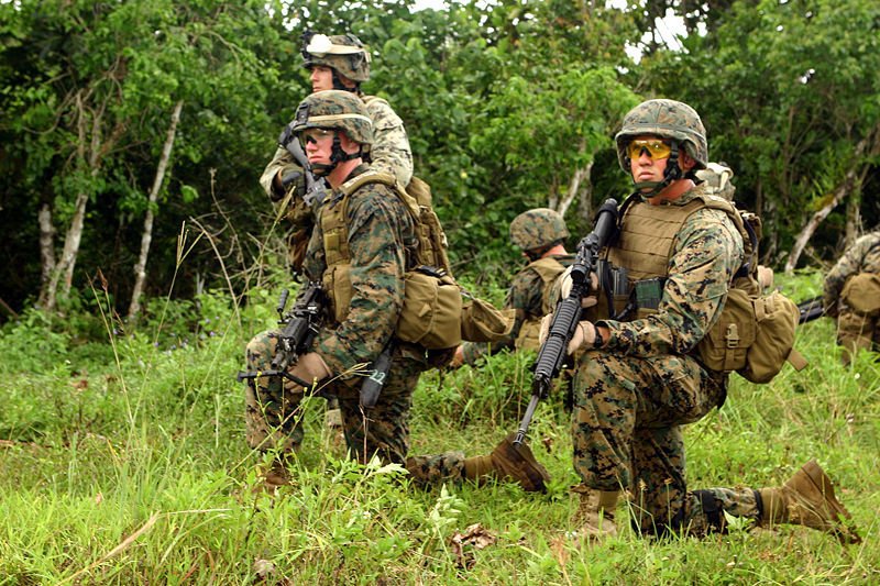 Морские пехотинцы в боевой униформе MARPAT для лесистой местности.