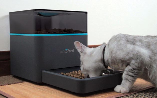 Данное приспособление носит название SmartFeeder, оно предназначено для регулярного кормления домашнего питомца во время отсутствия его хозяев. Сам робот представляет собой автоматизированную конструкцию, к которой присоединены диспансер, миска и емкость, в которой хранится 3 кг сухого корма. Благодаря специальной технологии робот самостоятельно определяет требуемый объем пищи и частоту кормлений. Также SmartFeeder анализирует информацию о том, сколько питомец съел за один раз и при следующем кормлении выдает порцию, соответствующую его потребностям. Осуществлять управление конструкцией можно на расстоянии, при помощи смартфона, ноутбука или планшета, т.к. робот имеет возможность подключения к Интернету. SmartFeeder был разработан в 2012 году компанией PetNet, уже в 2014 году было продано 5000 его экземпляров.