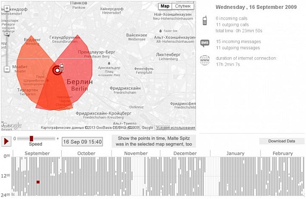 Один день из жизни Мальте Шпитца. Фото с сайта computerra.ru