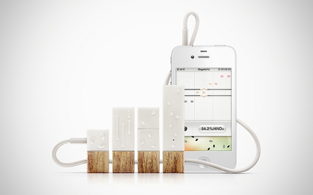 Lapka Personal Environment Monitor в себя 4 устройства с датчиками, анализирующими окружающую среду. Один из них способен обнаружить наличие посторонних примесей в пище – в нее втыкается специальный датчик-стержень. Другой определяет условия окружающей среды (влажность и температуру) и сопоставляет эти данные со стандартом комфортных условий для человека (эти данные внесены в память прибора). Третий следит за уровнем радиации, четвертый измеряет электромагнитное поле вокруг владельца. Каждый монитор подключается к устройству под управлением iOS и работает в паре со специальным приложением.