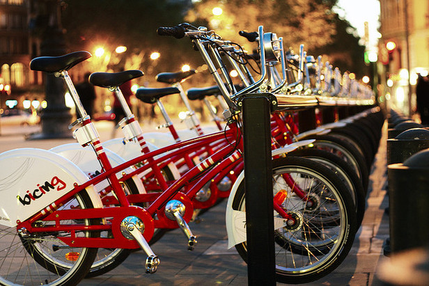 Вроде той, что действует в Барселоне. На всех мало—мальски крупных улицах можно найти стоянки велосипедов Bicing. Система проста: берешь велосипед, едешь по своим делам, оставляешь в любом удобном месте. Предварительно необходимо зарегистрироваться и получить персональную карточку. Разумеется, все это идет в комплекте с разветвленной сетью велосипедных дорожек. Удобно для жителей, экологично для города.