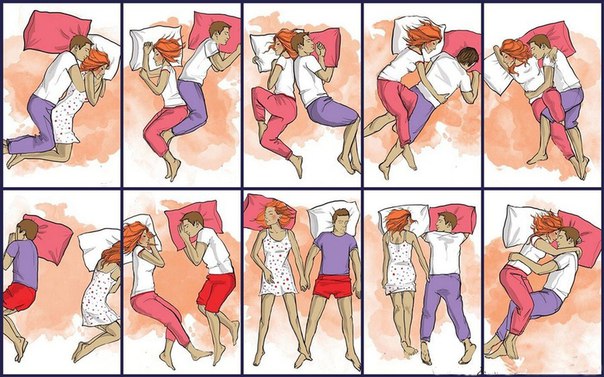 Так спят пары, которые объединены крепкой духовной связью, но проводят много времени отдельно. Она может проводить по 8 часов на работе, а он — ночи напролет с друзьями. И наоборот. Партнеры принимают друг друга такими, какие они есть.