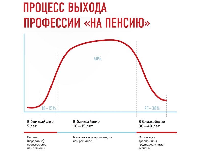 Что касается рабочих профессий, то здесь на пенсию до 2020 года уйдут билетёры, парковщики, операторы call-центра, лифтёры и почтальоны, а после 2020 — вахтёры, шахтёры, машинисты товарных составов, инспекторы ДПС, горняки, фасовщики, варщики, прорабы, швеи и сапожники, водители такси.
