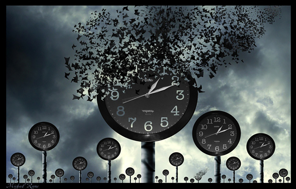 Время можно уподобить могучему дереву, где корни, спрятанные в земле - это прошлое, хорошо видимый и осязаемый ствол - настоящее, а пышная, ветвящаяся тысячами отростков крона - будущее. Такую аналогию автор привёл для того, чтобы читателю было понятно, что с точки зрения настоящего, - будущее бесконечное множество векторов возможных событий и вероятностей. Будущее однозначно не определено.