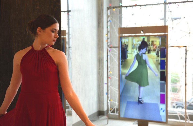 Memomi — это электронное зеркало, позволяющее менять цвет одежды, не переодеваясь, и примерять аксессуары, не надевая их. Оно позволяет рассматривать себя в реальном времени со всех ракурсов и в разной одежде, не переодеваясь.