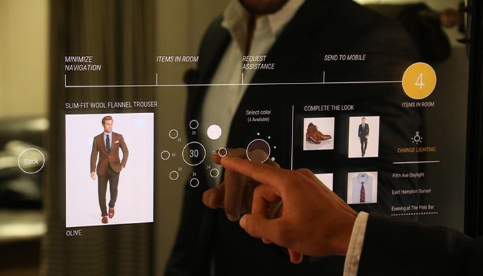 В ноябре нью-йоркская сеть Ralph Lauren запустила у себя в магазинах интерактивные зеркала, с помощью которых можно запрашивать размеры, просматривать все товары магазина, менять освещение в раздевалке или попросить помощи у консультанта. Если же вы решили отложить покупку вещи на другой раз, то такое зеркало позволяет переслать информацию о ней прямо на телефон.