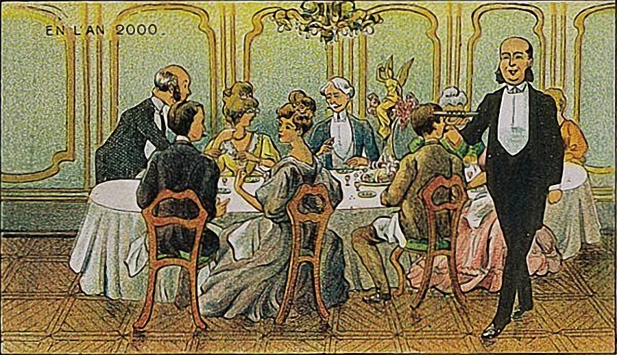 Писатели-фантасты разных стран и тут не оставались в стороне. Гастрономические фантазии порой заносят их в такие дебри…. Возьмем хотя бы нашего знакомца Герберта Уэллса. В своих произведениях он не только путешествовал во времени, но и пытался представить себе какой будет пища будущего, эта самая чудо-еда? В 1904 году, ровно сто лет назад, он пишет роман «Пища богов». Сюжет прост: двое ученых создают чудо-порошок. «Они называли свое открытие Гераклеофорбией…и, принимая во внимание плоды, которые, она уже принесла и, безусловно, принесет в будущем, название это вполне заслуженно». Все, кому в пищу добавляли этот порошок, должны были становиться большими и здоровыми. Ученые гордились своим великим изобретением. Начав опыты на курах, они практически сразу испробовали Гераклеофорбию, которую между собой стали называть просто «ПИЩЕЙ», на людях. Цыплята становятся как страусы, а малыш превращается в гигантского ребенка. И вдруг оказалось, что испытуемым «теперь не хватает обычной еды. Нужно все время добавлять ПИЩИ». И вообще применение ПИЩИ не так безвредно, как казалось. И ученые делают горький вывод: