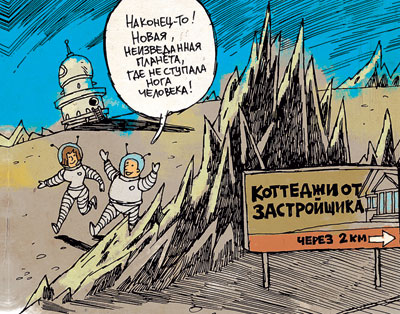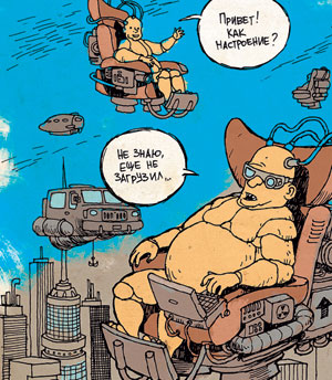 Из газеты «Правда Утопии». «Там, в большом космосе, идет большая работа. Монтажники космоцентра уже приступили к состыковке элементов первого космического города, способного вместить более 50 тысяч жителей. Его первыми обитателями станут ученые из исследовательского центра им. Циолковского — именно здесь проходит сейчас передний край борьбы с гравитацией».