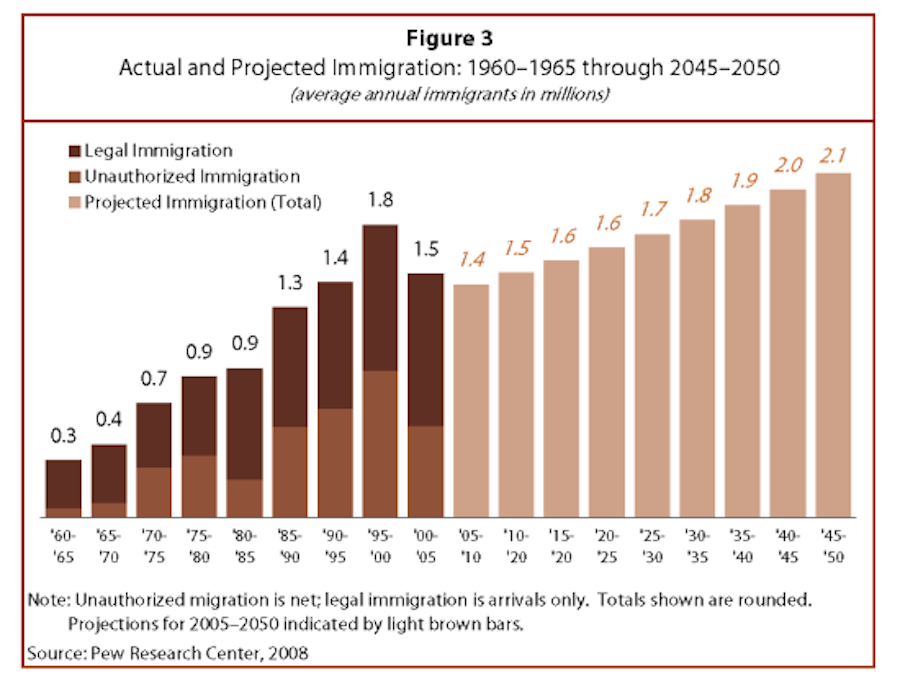 Как такое возможно? Краткий ответ – иммиграция. В США сейчас въезжают примерно 1,5 млн человек в год, и это число будет расти. К 2050 году пятую часть населения страны будут составлять люди, рожденные за пределами США, достигнув 81 млн человек.