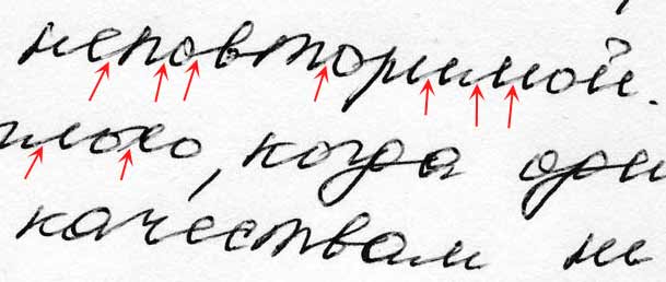 Что касается междустрочных интервалов, то их большая величина указывает на чуткость автора, а также на взвешенность его действий. Если же расстояния несоразмерно широкие, личность характеризуется склонностью к скептицизму и нежеланием принимать участие в общественной деятельности. Усредненный интервал показывает ясность мышления вкупе с талантливым планированием.