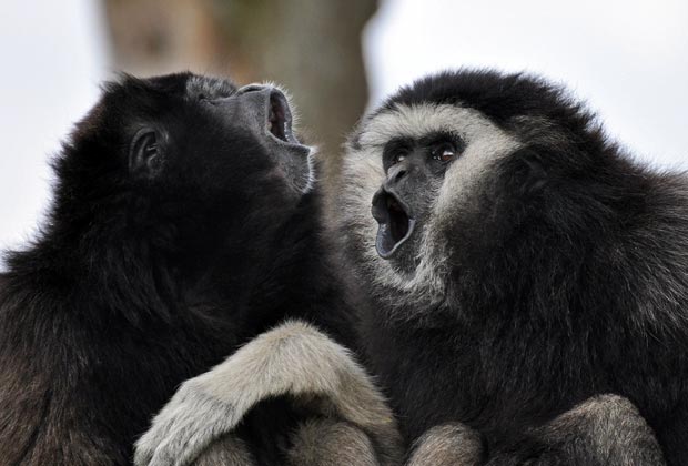 Стоит отметить одно необычное явление, которое встречается у приматов — песни гиббонов. Обезьяны издают сложные звуки для привлечения брачного партнера, этими же «песнями» гиббоны сообщают о том, что территория уже занята, а также «песнями» поддерживают связь между друг другом.