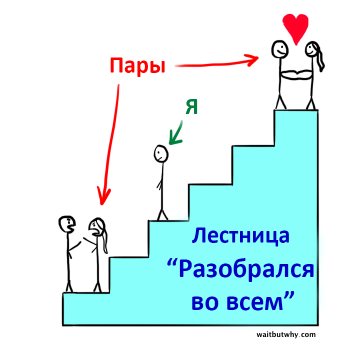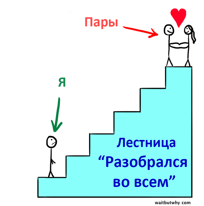 Но если кто–то изучал бы в университете, как выбрать себе спутника жизни и построить здоровые отношения, потом начертил план действий и фиксировал все свои достижения в строго организованной электронной таблице, то общество бы сказало, что этот человек: А) сверхрациональный робот, Б) слишком много парится об этом и В) большой чудак.