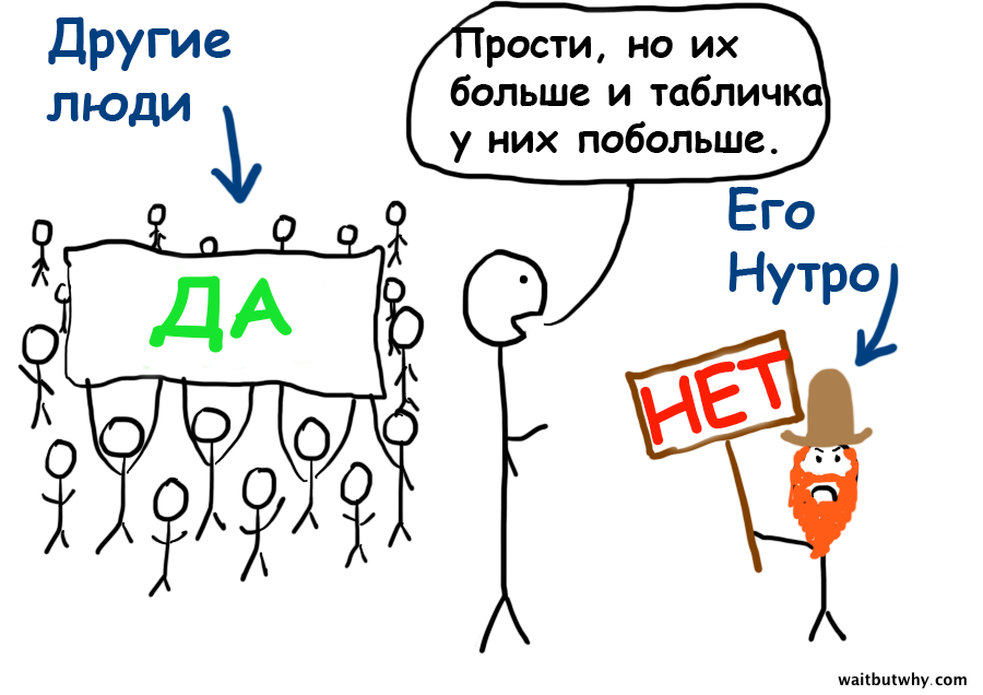Когда мы начинаем с кем–то встречаться и ощущаем небольшой приступ волнения, наша биология сразу активирует режим «окей, давай это сделаем» и сбрасывает на нас бомбы химических веществ, предназначенных для того, чтобы мы приступили к спариванию (удовольствие), влюбились (фаза медового месяца) и затем связали себя долгосрочными обязательствами (привязанность). Наш мозг обычно в состоянии перераспределить эти процессы в случае, если человек нам нравится не так сильно, но часто, когда верным решением было бы двигаться дальше и найти кого–то другого, мы поддаемся этим химическим горкам и, в конце концов, женимся.