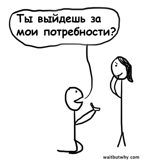 У всех есть свои требования и все хотят, чтобы их супруг им отвечал. Но проблемы появляются, когда удовлетворение этих требований — она для меня готовит, он будет хорошим отцом, из нее выйдет отличная жена, он богат, она держит меня организованным, он прекрасен в постели — становятся основой при выборе спутника жизни. Все эти перечисленные вещи лишь отличные бонусы, но не более того. Ведь спустя год брака, в котором человек привык, что все его потребности удовлетворяются, они больше не будут его беспокоить, и если в таких отношениях нет больше ничего хорошего, этот выбор обеспечит человеку очень скучную жизнь.