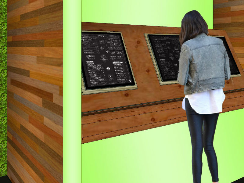 Теперь вам предстоит найти свободные места. Вы проходите в дальнюю часть ресторана, где расположены кабинки со столами, и справа от себя видите терминалы самообслуживания. Они напоминают вам о далеких 2010-х, когда из-за непрерывных протестов, вызванных политикой в области заработной платы, во многих ресторанах быстрого питания, таких, например, как Макдоналдс, пришлось установилть терминалы самообслуживания.